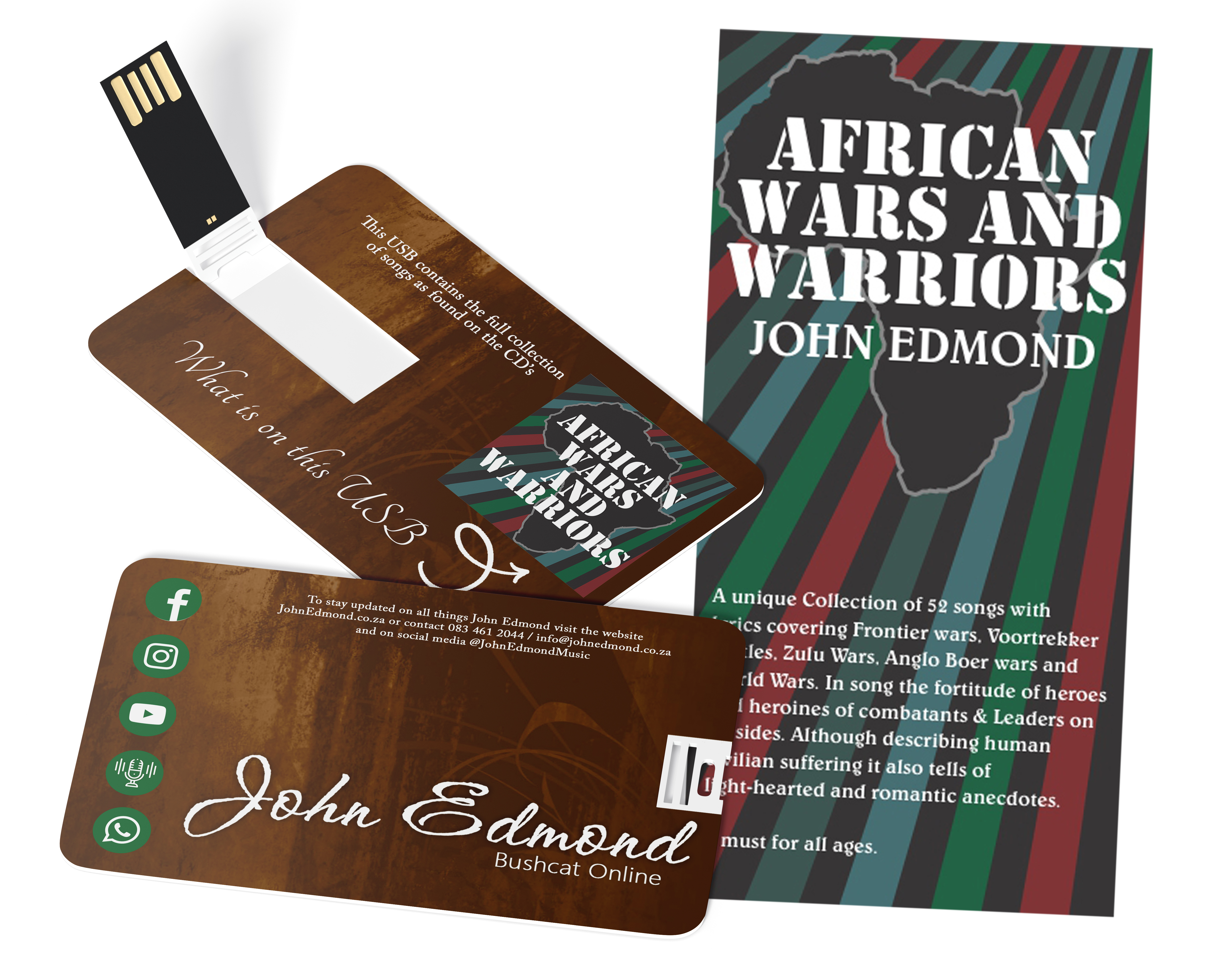 A unique collection of 52 songs with lyrics covering Frontier wars, Voortrekker Battles, Zulu Wars, Anglo Boer wars and Wold Wars.