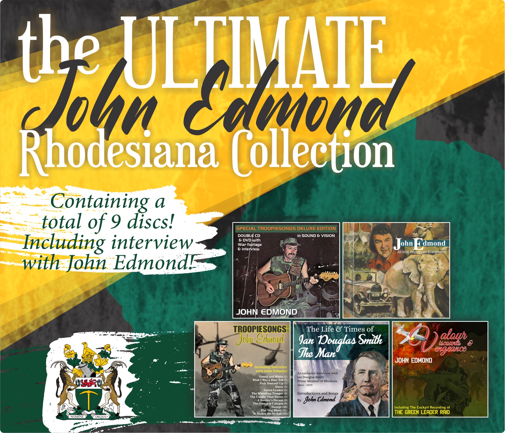 A double CD containing 44 musical masterpieces from the albums, Rhodesia The Brave, Troopies In Exile. Some of the songs are Christmas in Rhodesia, The Troopie, Rhodesians of The World and choice tracks from the BSAP Centenary Album plus other bonus tracks. A must have for any John Edmond fan.